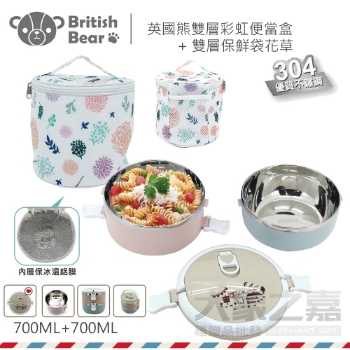 英國熊雙層彩虹便當盒+雙層保鮮袋花草